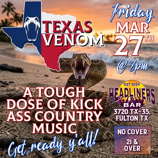 Texas Venom is back in town this Friday night at Headliners Bar! Show starts at 9pm! GET READY Y’ALL!!!