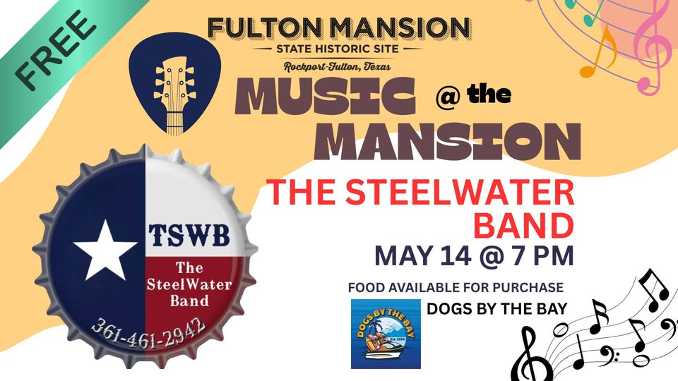 Join us for the free Music at the Mansion featuring The SteelWater Band! Bring your own beverage, cooler, chair, blanket, and/or picnic basket to enjoy an evening of music under the skies. Sunscreen and bug spray are recommended for a comfortable experience! Food will be available for purchase from Dogs by the Bay!