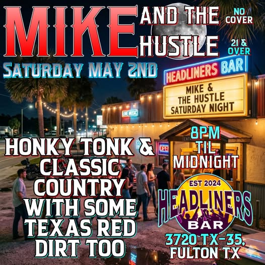 Mike and The Hustle take the stage Saturday night at 8pm! Get your dancing shoes on and show up at Headliners Bar! We'll see ya there!